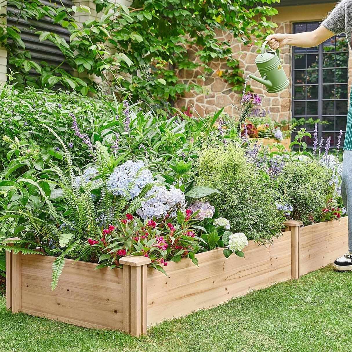 กล่องปลูกต้นไม้ยกสูงขนาดใหญ่ที่ทำจากไม้